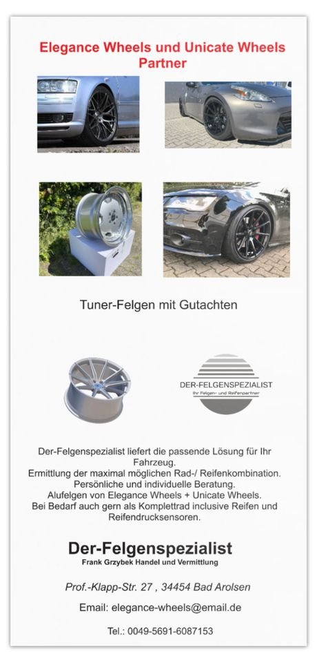 Wir sind an der Entwicklung dieser Felgen beteiligt und daher Ihr Ansprechpartner für Elegance Wheels.