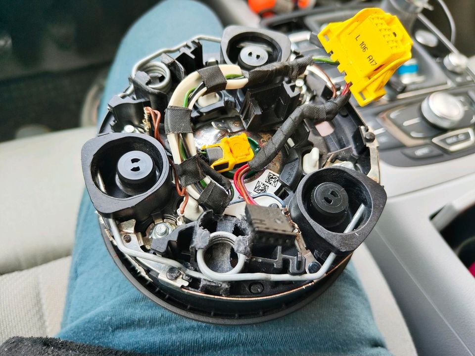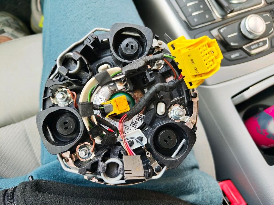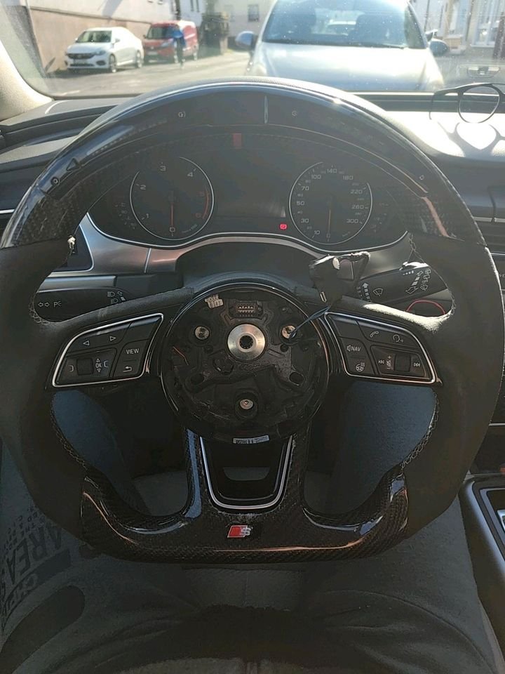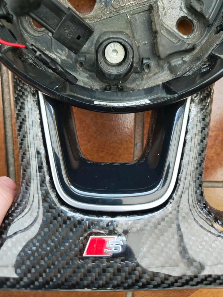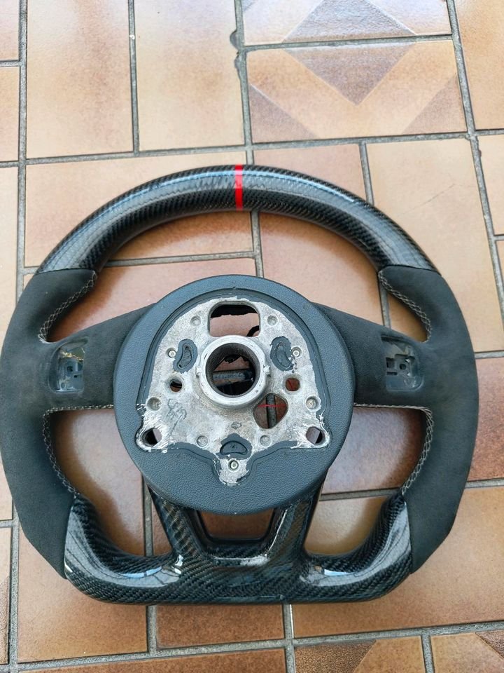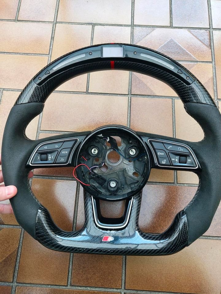 Ich verkaufe ein Audi A4 B9 Lenkrad, das angeblich für den A6 C7 geeignet ist. Ich habe es für meinen Audi A6 C7 gekauft, und der Verkäufer versicherte mir, es sei bereits passend. Das stimmt aber nicht. Ich konnte niemanden finden, der es anpassen konnte, deshalb verkaufe ich es. Ich tausche es gegen ein maßgefertigtes Lenkrad für einen Audi A6 C7. Nur persönliche Übergabe. Gebraucht, ein kleiner Kratzer an der Unterseite ist auf Bild Nummer 7 zu sehen.