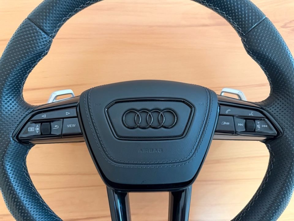 Verkaufe ein originales Audi Lenkrad mit hochwertigem perforiertem Leder. Das Lenkrad wurde bei Audi neu bestellt und alles schwarz lackiert. Wurde für 20tkm in einem RS Q8 genutzt.