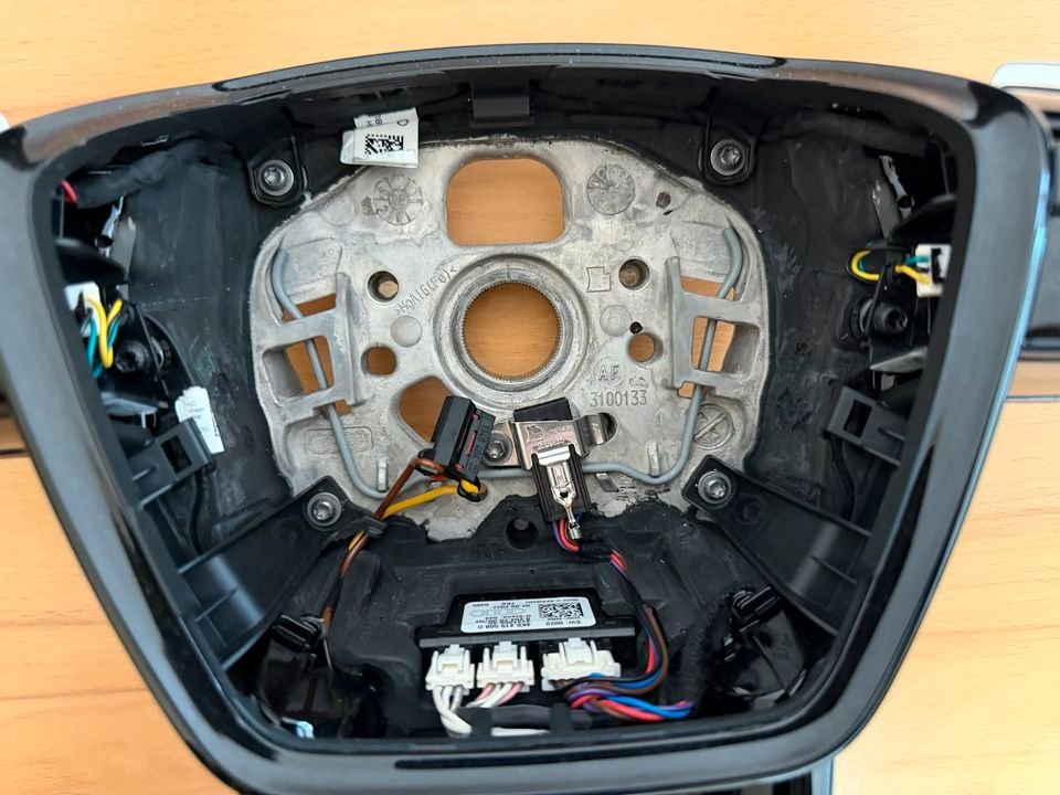 Das Lenkrad befindet sich in sehr gutem Zustand ohne sichtbare Abnutzung oder Beschädigungen. Die Tasten funktionieren einwandfrei und das Leder zeigt keine Risse.