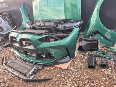 This is the ultimate front end package for the BMW G82 M4 Competition – a complete, color-matched “maximum front” harvested from a single vehicle in the stunning C4G Isle of Man Green Metallic. Every single front component is included, all in the same factory finish, requiring NO REPAINTING and ready for immediate installation.