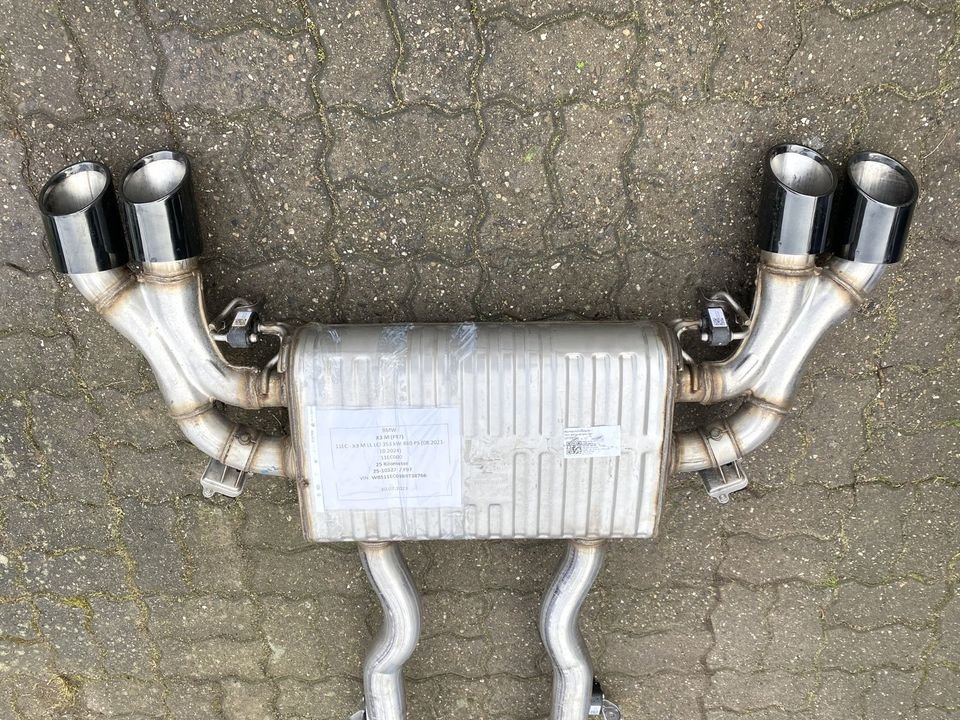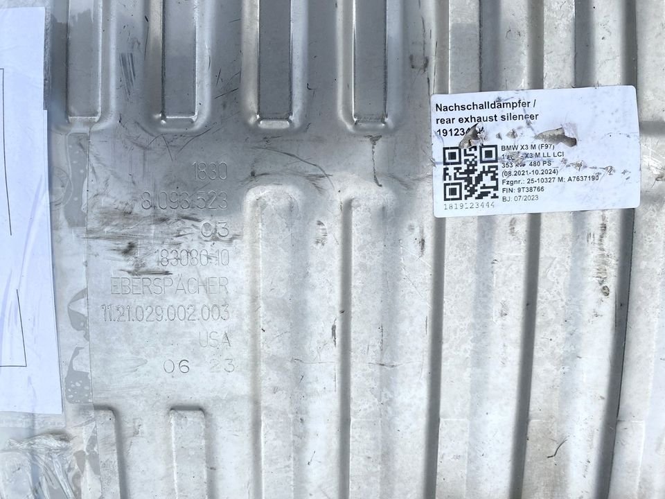 Original BMW X3M F97 LCI Auspuff M Sportabgasanlage Endschalldämpfer Nachschalldämpfer / rear exhaust silencer mit OPF Otto Partikel Filter, 2023 Produktion, nur 25 km Stand (wie NEU !!!), gebraucht aber funktioniert frei.