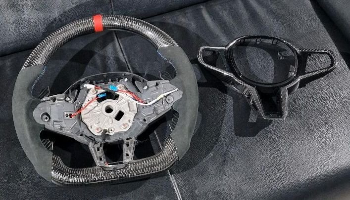 BMW Lenkrad M Serie Carbon/Alcantara für 2er, 3er, 4er nur Facelift G21 G22 G23 G42 inkl. Schaltwippen von Carbon Step. Verkauf nur an Selbstabholer. Kombilität zum Fahrzeug muss vom Käufer vor Kauf geprüft werden. Keine Rücknahme.