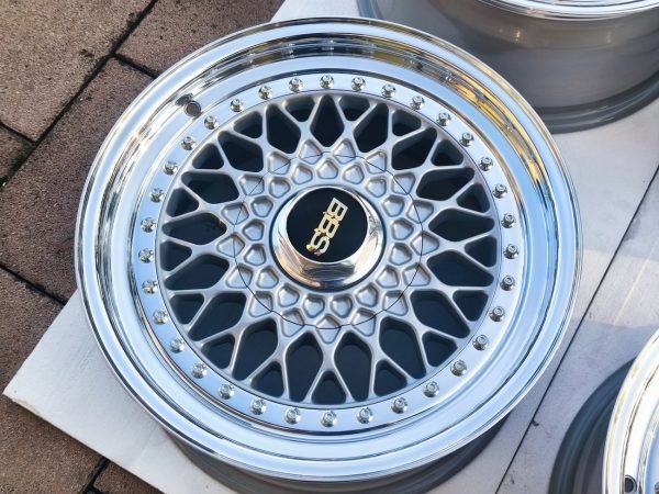 Authentic forged 3-piece BBS RS133 wheels 16″ manufactured in Germany. Professionally refinished with silver powder-coated faces and polished lips, these wheels retain original BBS hardware and markings. The set includes four BBS center caps, a BBS center cap removal tool, and a TÜV certificate confirming offset and fitment specifications. These wheels are ideal for Mercedes-Benz R107 and W/C126 models but are compatible with other 1980s–1990s Mercedes-Benz chassis.