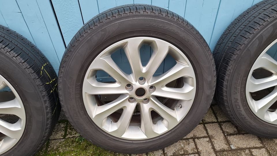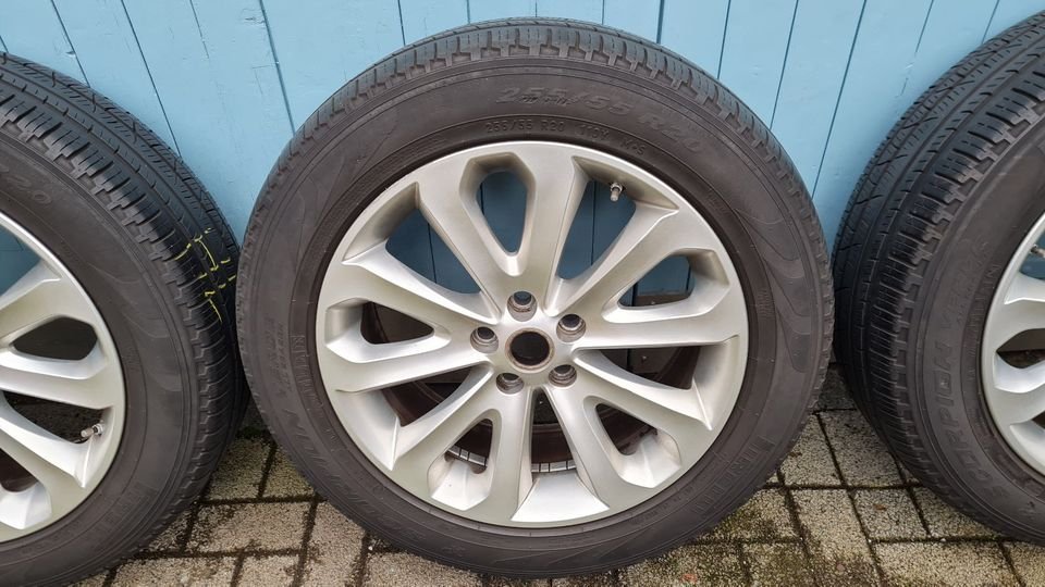 Die Räder waren auf einem RANGE ROVER Sport (L494) montiert und dürfen in dieser Reifenkombination auch bei LAND ROVER Discovery 5 (L462), RANGE ROVER (L322/L405) eingebaut und gefahren werden. Mit anderen Reifen (255/50R20) dürfen die Felgen ebenfalls bei LAND ROVER Discovery 3/4 und LR3/LR4 (L319) gefahren werden. Bitte die Passgenauigkeit anhand der unten stehenden Felgenangaben selbst überprüfen!
