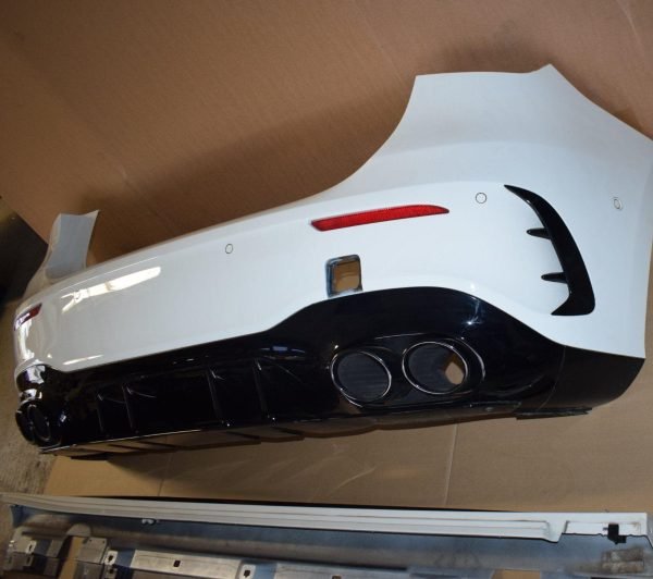 Upgrade or restore your Mercedes-AMG A45 S (W177) with this genuine Mercedes-Benz parts package: complete front bumper, complete rear bumper, and side skirts — all in Polar White (9149). This OEM body kit preserves factory styling and fitment while delivering the aggressive AMG look and aerodynamic function expected from the A45 S AMG Line. Mercedes-AMG A45 S Body Kit