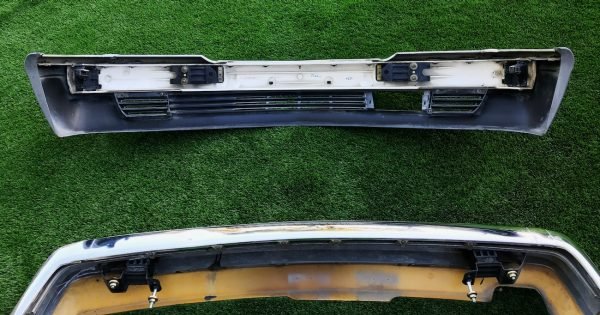 Available is a complete pair of authentic Mercedes-Benz Gen II Euro-spec bumpers for the 1986–1991 W126 S-Class. These are true European-market pieces featuring the slimmer, cleaner profile not offered on U.S.-delivery models. Both bumpers retain their factory Mercedes-Benz part numbers, chrome trim, and original Stratus Gray Metallic (7177) paint.