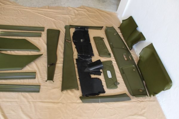 This rare green interior set is designed for Mercedes-Benz W123 sedans and includes a full complement of interior components. The set is intended as a complete swap or restoration solution for enthusiasts seeking a factory-correct, vintage W123 interior in an uncommon green MB-tex finish. Mercedes-Benz W123 Interior Set