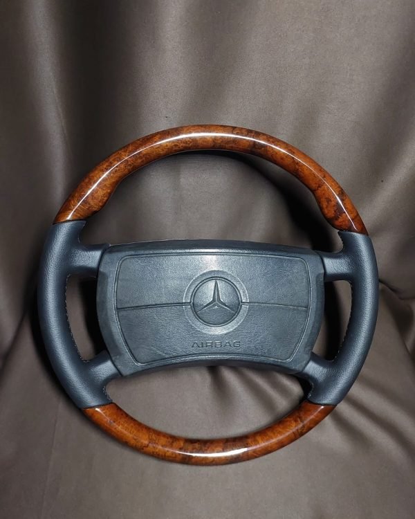 Enhance your Mercedes-Benz W126 interior with this beautifully restored steering wheel, featuring brand-new wood and leather finish. Designed specifically for the W126 S-Class (1979–1991), this wheel offers a perfect blend of luxury craftsmanship and period-correct authenticity.