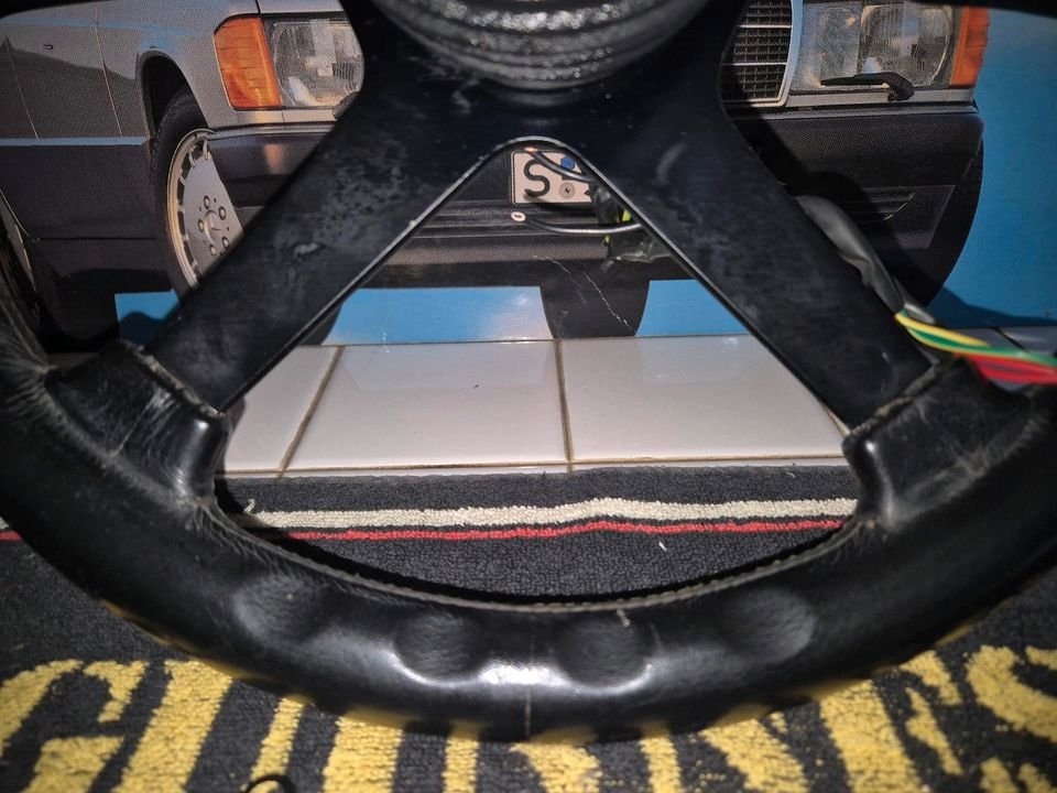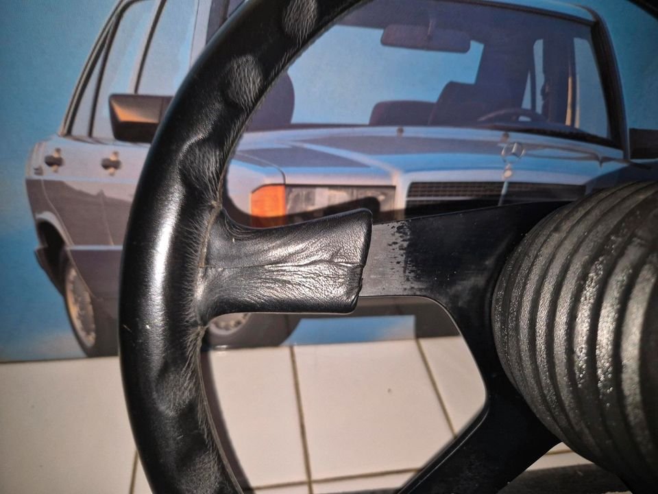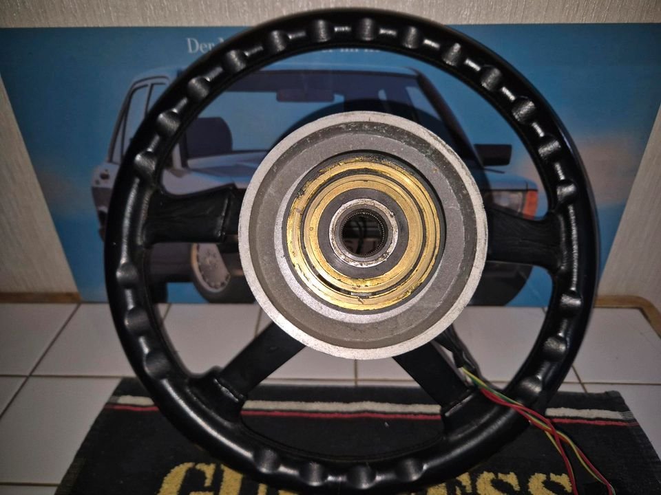 Das Lenkrad zeigt altersbedingte Gebrauchsspuren, ist aber noch in gutem Zustand. Perfekt für Oldtimer-Restauration oder Tuning-Projekte.