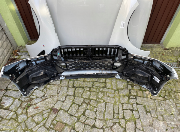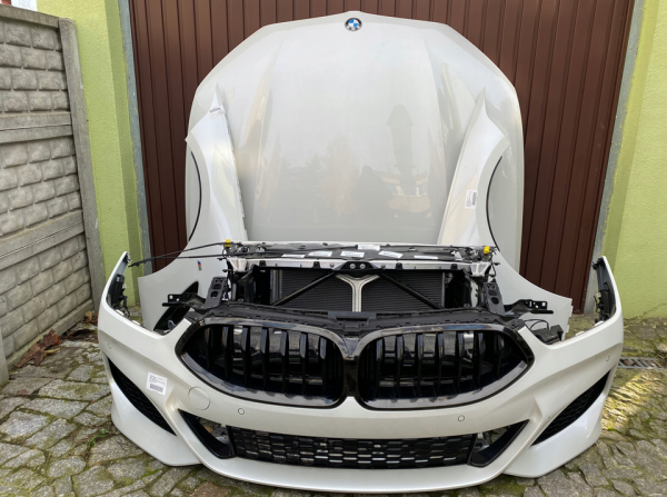 This is a complete, fully original OEM front-end assembly for the BMW 8 Series (Coupe, Convertible, and Gran Coupe models G14, G15, G16). The entire package is finished in the factory standard color A300 Alpine White Uni and is ready for immediate installation, requiring no repainting or color matching work.