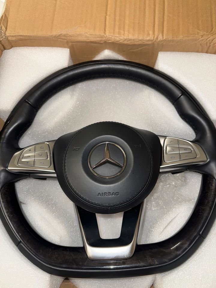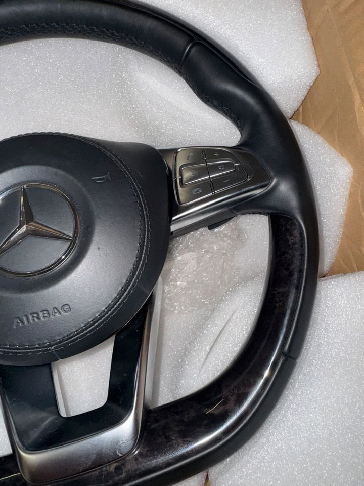 Hallo, ich biete hier ein originales Mercedes-Benz AMG Lenkrad an. Es ist eine hochwertige Kombination aus glattem schwarzem Leder und einer edlen Echtholzeinlage, die deinem Fahrzeug einen exklusiven Look verleiht.
