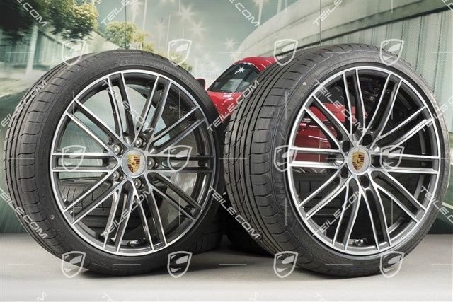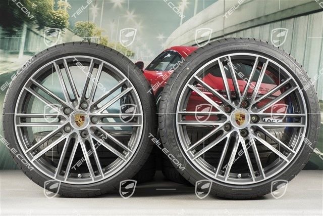Porsche 718 Boxster/Cayman 982 20″ Turbo IV Sommerräder Satz, Felgen 8,5J x 20 ET57 + 10,5J x 20 ET47 + Sommerreifen GoodYear235/35 ZR20 + 265/35 ZR20, mit RDK-Sensoren.