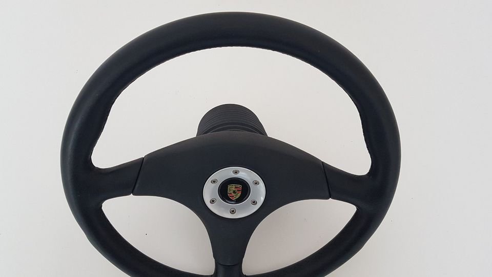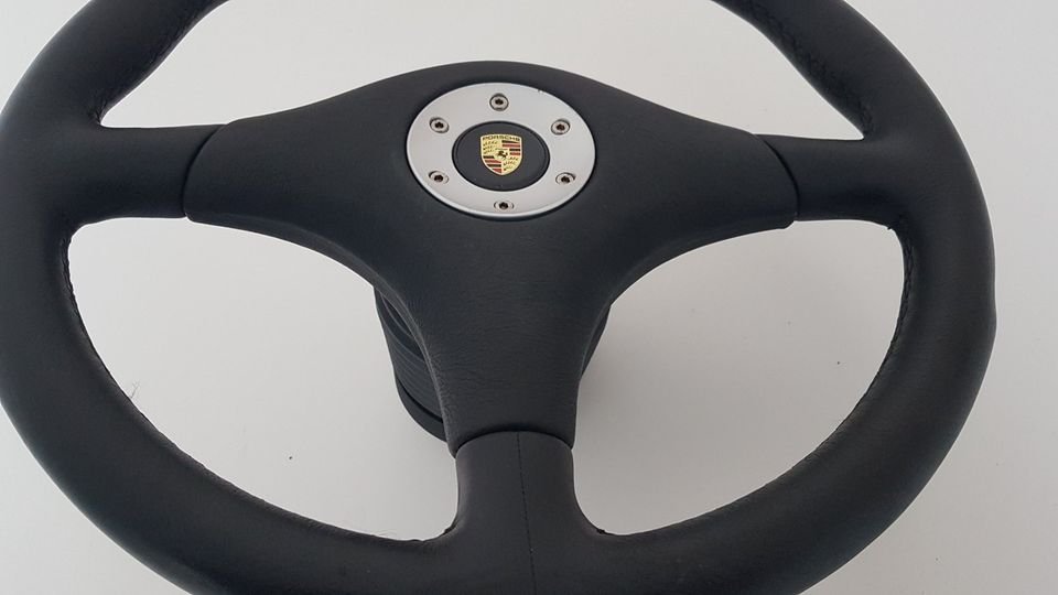 Original Porsche 911 944 964 993 RS Clubsport Lenkrad 99334708480, Leder Schwarz, mit Prallplatte, guter Zustand mit geringfügigen Gebrauchsspuren.