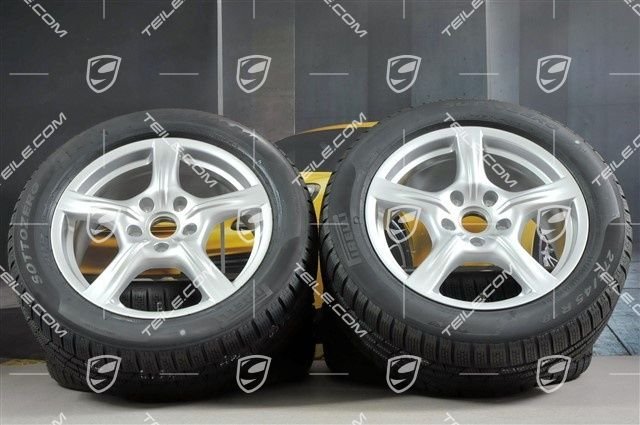 Porsche 970 Panamera 18″ Panamera Winterräder Satz, 8J x 18 ET 59 + 9J x 18 ET 53, mit Pirelli Sottozero II Winterreifen 245/50 R18 + 275/45 R18, mit RDK-Sensoren.