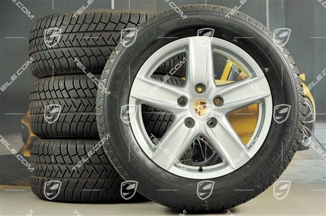 Porsche Cayenne 958 18″ Cayenne S III Winterräder Satz, Felgen 8 J x 18 ET 53 + NEUE Michelin Winterreifen 255/55 R 18 109V XL M+S, ohne RDK-Sensoren (evtl. Aufpreis).