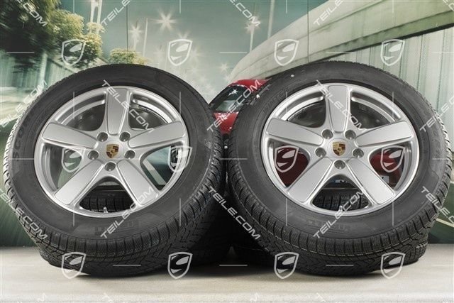 Porsche Cayenne E2/958.2 19″ Winterräder Satz Cayenne Sport Classic, Felgen 8,5J x 19 ET59 + Pirelli Winterreifen 265/50 R19, in GT-Silber Metallic, mit RDK-Sensoren.