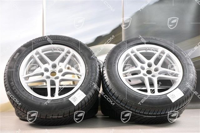 Porsche Macan 95B.2 18″ “Macan S” Winterräder Satz, Felgen 8J x 18 ET21 + 9J x 18 ET21 + NEUE Continental Winterreifen 235/60 ZR 18 + 255/55 ZR 18, mit RDK-Sensoren.