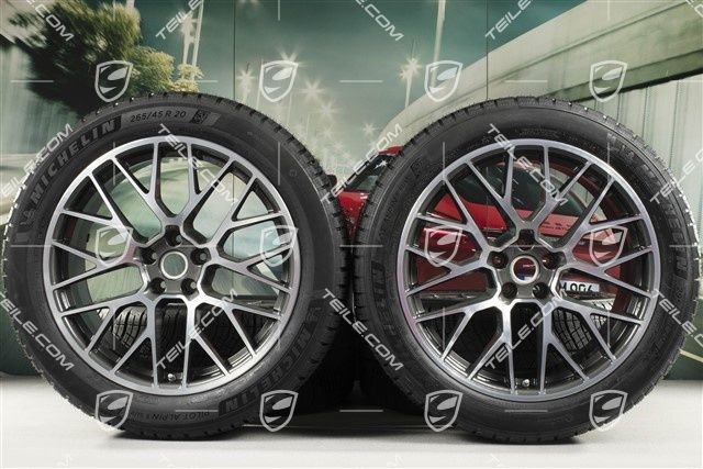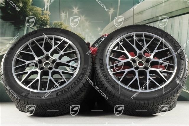 Porsche Macan 95B.2 20″ “RS Spyder Design” Winterräder Satz, Felgen 9J x 20 ET26 + 10J x 20 ET19, Michelin Pilot Alpin 5 SUV Winterreifen 265/45 R20 + 295/40 R20, mit RDK-Sensoren.