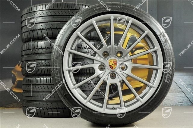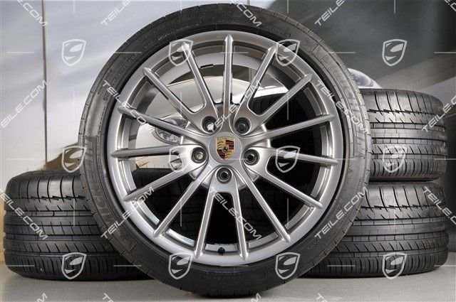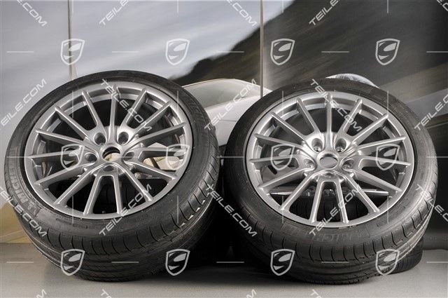Porsche Panamera 20″ Panamera Sport Sommerräder Satz, 2 x 9,5J x 20 ET 65 + 2 x 11,5 J x 20 ET 63, Michelin Sommerreifen 255/40 ZR20 + 295/35 ZR20, mit RDK-Sensoren.