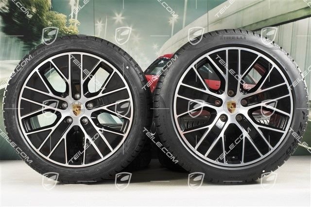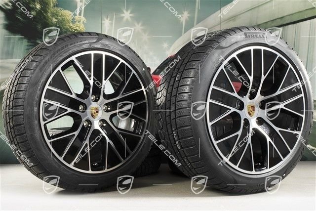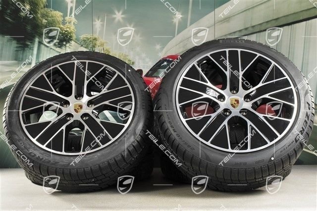 Porsche Taycan 9J1 20″ Turbo Aero Winterräder Satz, Felgen 9J x 20 ET54 + 11J x 20 ET60, Pirelli Winterreifen 245/45 R20 + 285/40 R20, mit RDK-Sensoren.