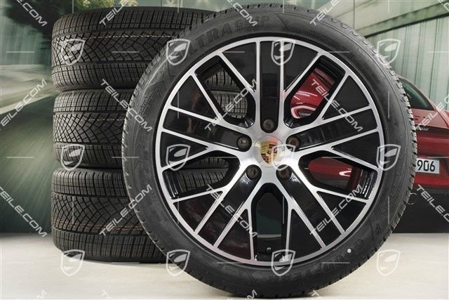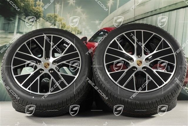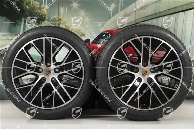 Porsche Taycan 20″ Turbo Aero Winterräder Satz, Felgen 9J x 20 ET54 + 11J x 20 ET60, Goodyear Winterreifen 245/45 R20 + 285/40 R20, mit RDK-Sensoren.