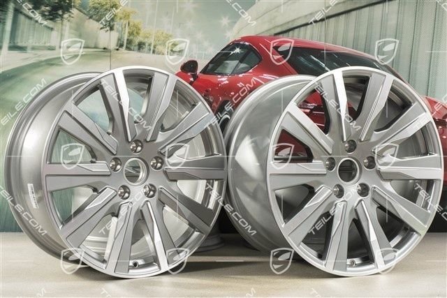 Porsche Taycan 9J1 20″ Taycan Tequipment Design Felgensatz, 9J x 20 ET54 + 11J x 20 ET60, platinsilber.