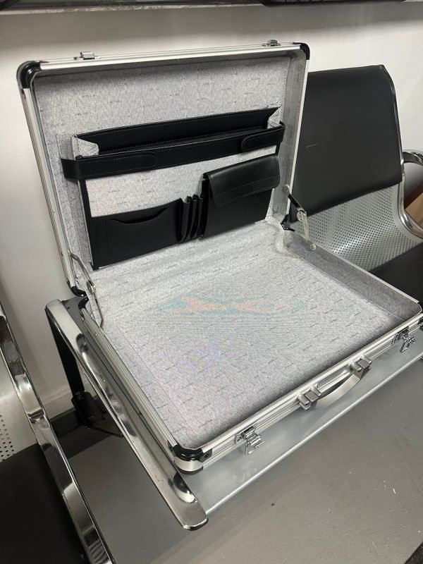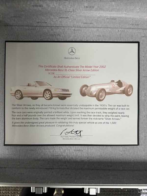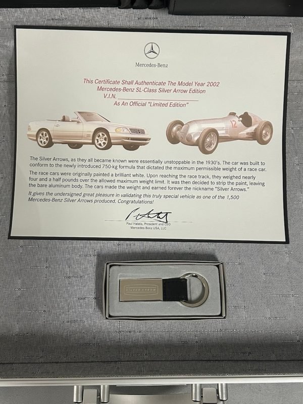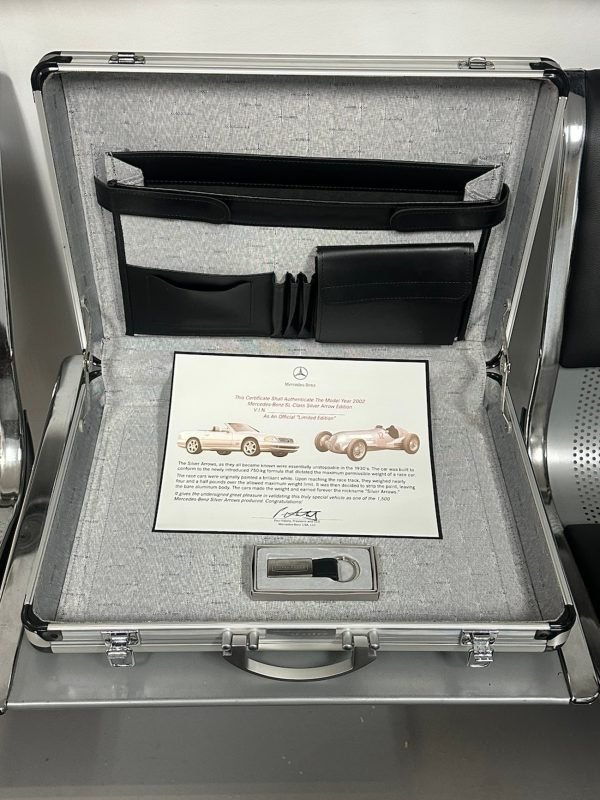 This is an authentic Mercedes-Benz R129 SL Silver Arrow Aluminum Briefcase, originally supplied only with the 2002 SL-Class Silver Arrow Edition. These briefcases were exclusive to the final-year R129 Silver Arrows, of which only 1,550 cars were produced. Many briefcases have been lost or separated from their original cars over the years, making complete examples like this especially hard to find.