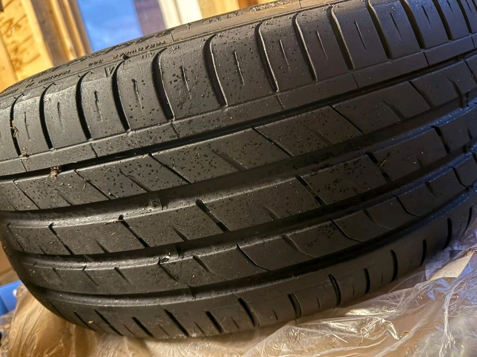 • Allgemein: Die Reifen und drei der vier Felgen befinden sich in einem sehr guten Zustand. Es gibt keine Bordsteinschäden, Kratzer oder Macken.