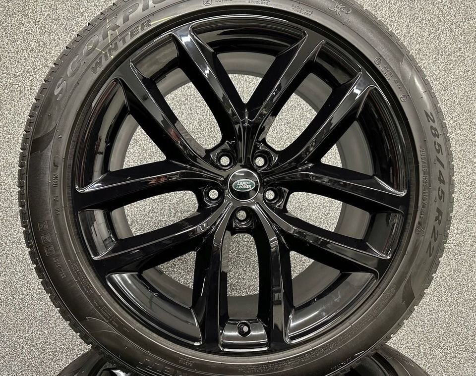 Verkaufe einen Satz original Land Rover Winterkompletträder, passend für Range Rover V L460 und Range Rover Sport L461.Felgen: 9,5Jx22H2, 5×120, Mittenloch 42,5 mm.Teilenummer: N9X2-GB; N9X2-GBBereift mit Pirelli Scorpion Winterreifen 285/45R22 114V, Profiltiefe 7 mm, produziert im Jahr 2022.Ausgewuchtet und sofort nutzbar.