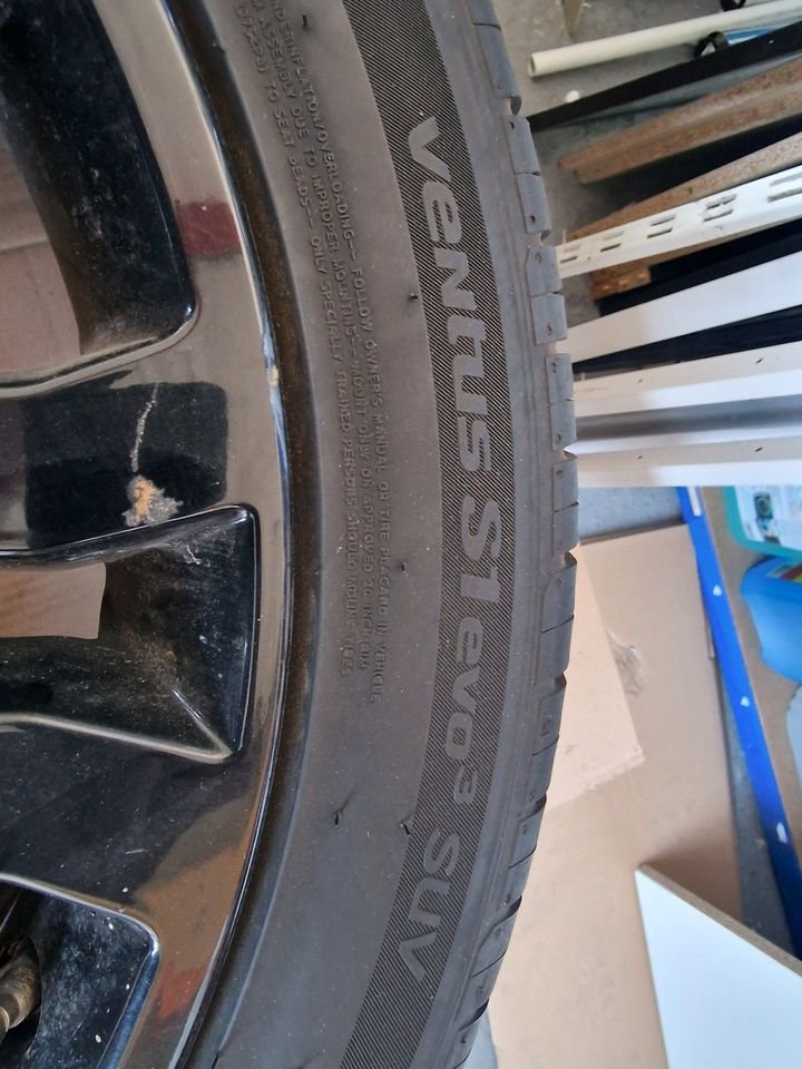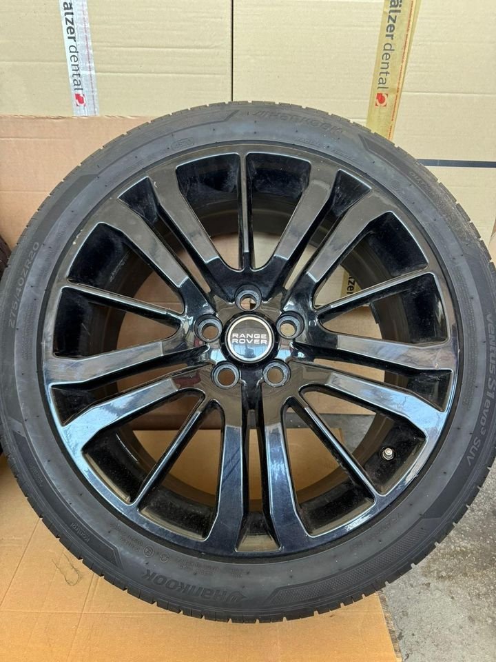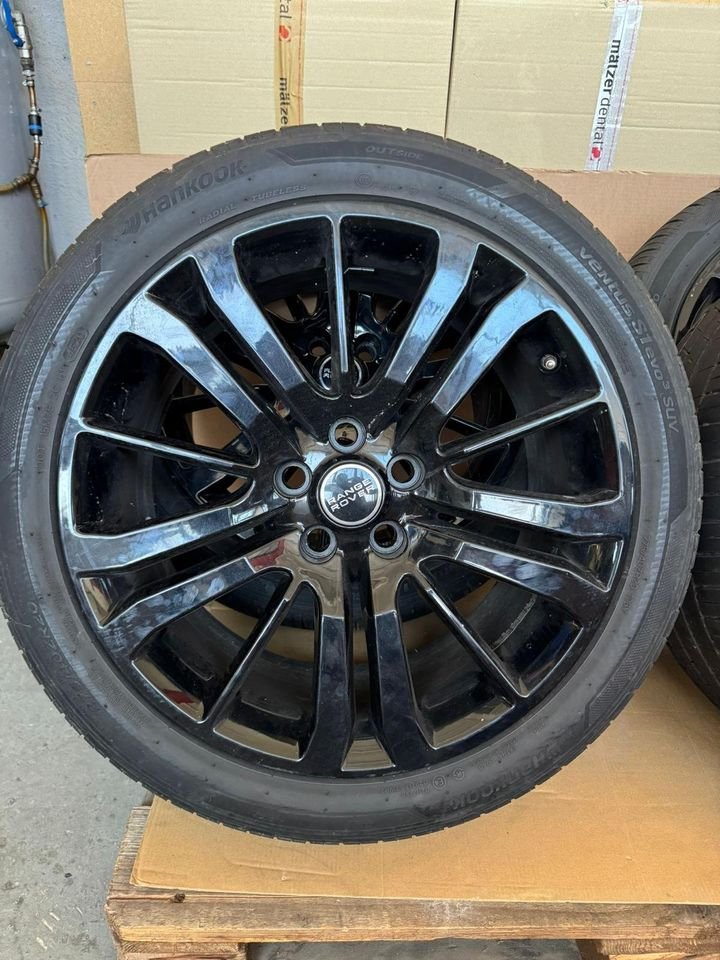Verkauft wird ein ein kompletter Satz , kaum gebrauchter Sommerreifen von “Hankook” auf Alufelge in schwarz von “Range Rover”.