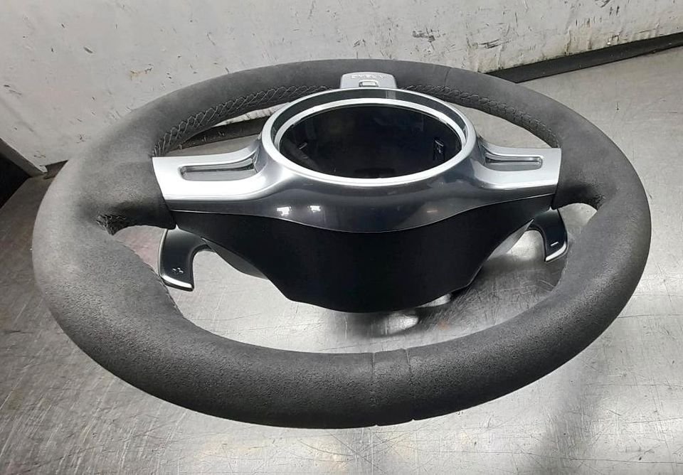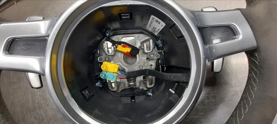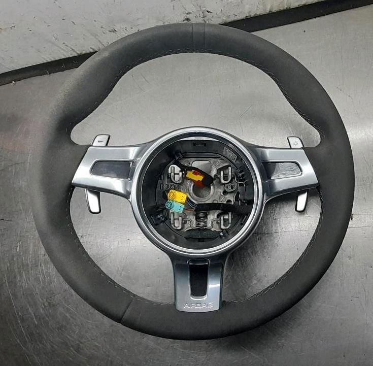 Angeboten wird ein Sportlenkrad vom 991 Turbo. Es handelt sich um ein Alcantaralenkrad mit Schaltwippen. Es wurde von 2013 bis Mitte 2016 verbaut. Für Fahrzeuge mit Sport Chrono Paket, ohne Lenkradheizung. Es wird wie auf den Bildern zu sehen ohne Airbag verkauft. Der Neupreis liegt bei circa 4500,-€