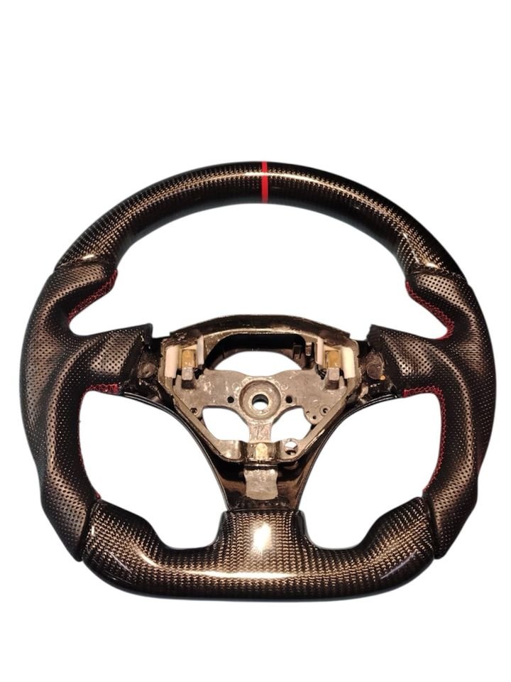 Supra mk4 / Celica t20 Lenkrad neu mit Carbon und Leder bezogen, Handauflagenposterung, Abflachung, 12uhr Markierung rot, rote Nähte