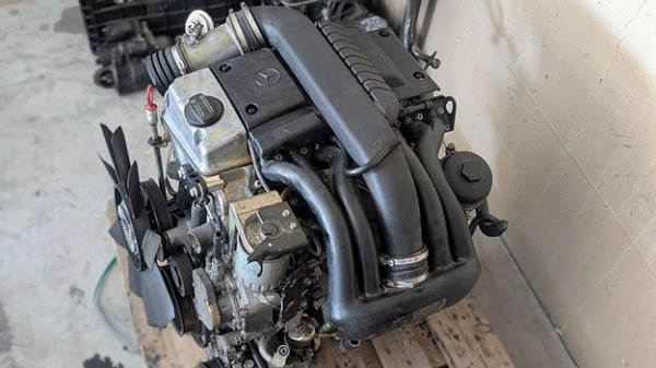 Used Mercedes-Benz OM604 diesel engine in reliable, good working condition. This is the compact 4-cylinder member of the legendary OM60x engine family, sharing core design traits with the OM605 and OM606. The OM604 was originally sold naturally aspirated, but when paired with a turbo upgrade and a larger mechanical injection pump, it becomes an excellent lightweight performance platform capable of impressive power gains.